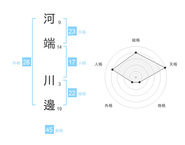 河端 川邊さんの総格は45画の4点!