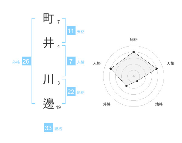 町井 川邊さんの総格は33画の4点!