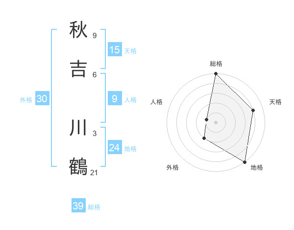 秋吉 川鶴さんを姓名の画数から五運を鑑定