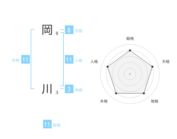 岡 川さんの総格は11画の4点!