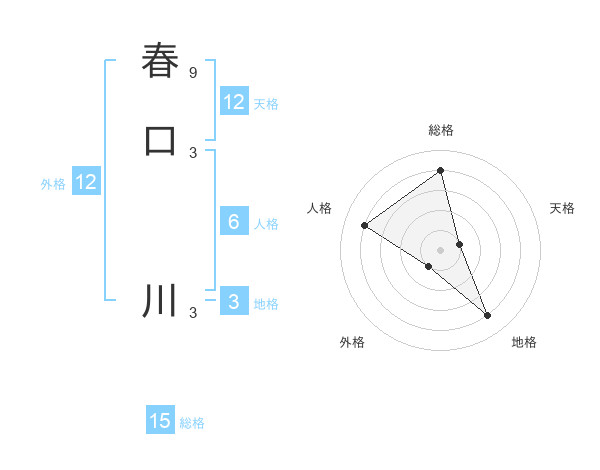 春口 川さんの総格は15画の4点!