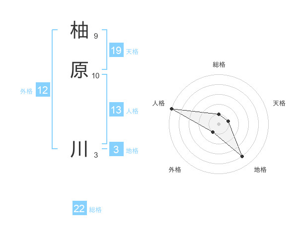 柚原 川さんの総格は22画の1点!