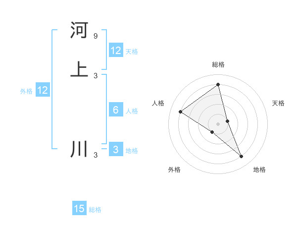 河上 川さんの総格は15画の4点!