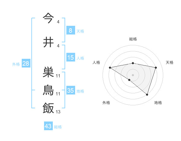 今井 巣鳥飯さんを姓名の画数から五運を鑑定