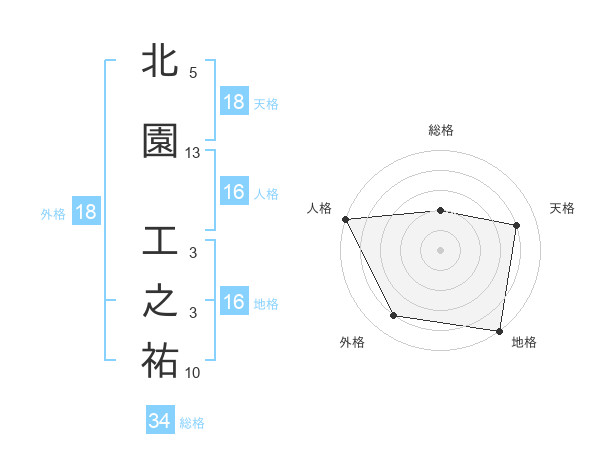 北園 工之祐さんを姓名の画数から五運を鑑定