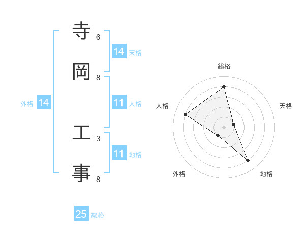 寺岡 工事さんを姓名の画数から五運を鑑定