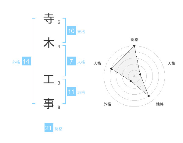 寺木 工事さんの総格は21画の5点!