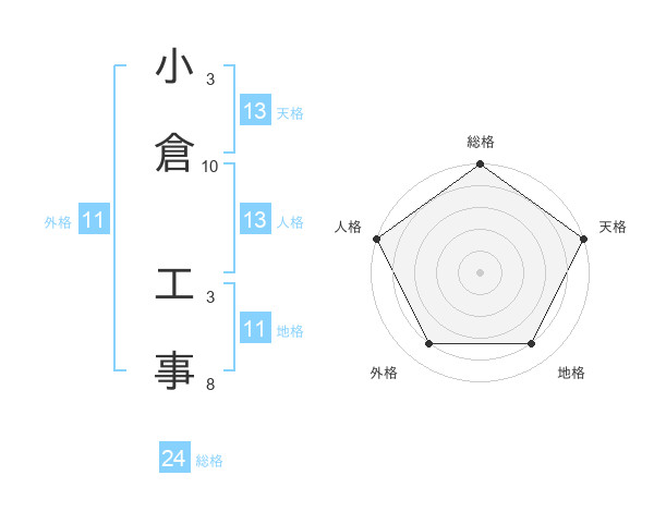 小倉 工事さんの総格は24画の5点!