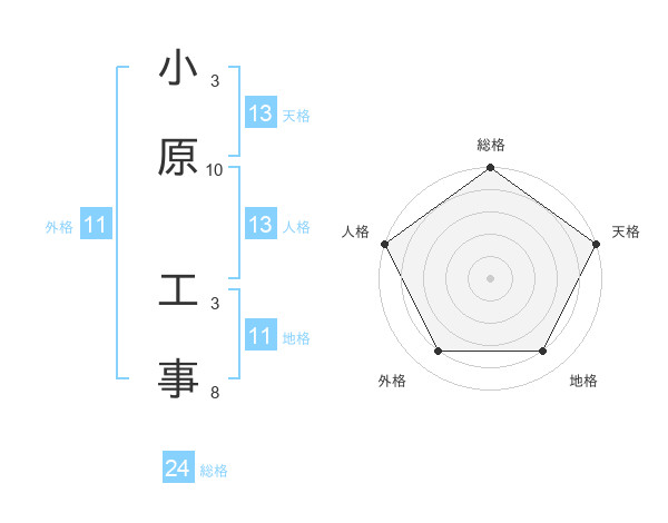 小原 工事さんの天格は13画の5点!