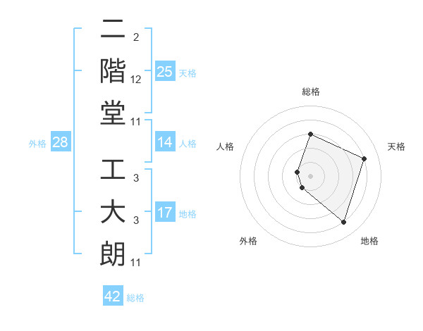 二階堂 工大朗さんを姓名の画数から五運を鑑定