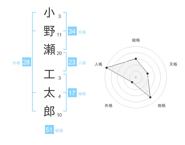 小野瀬 工太郎さんの名前の鑑定結果は!