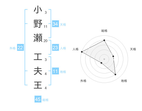 小野瀬 工夫王さんを姓名の画数から五運を鑑定