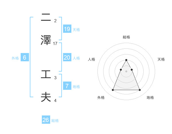 二澤 工夫さんの総格は26画の2点!