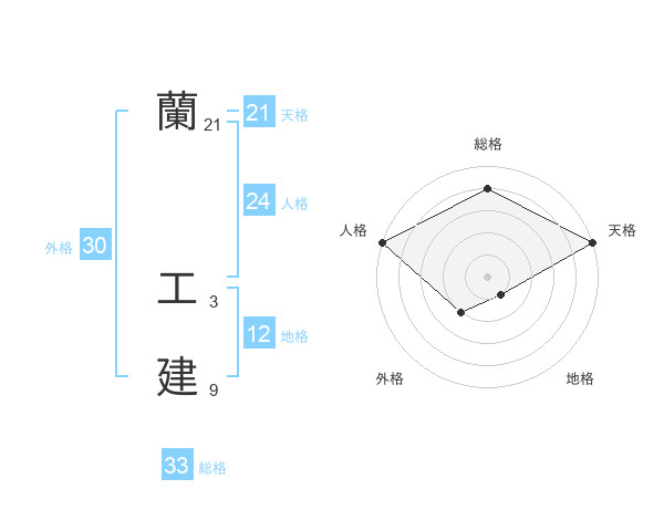 蘭 工建さんの天格は21画の5点!