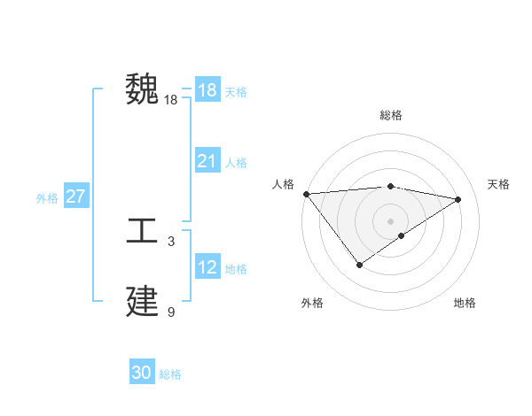魏 工建さんの総格は30画の2点!