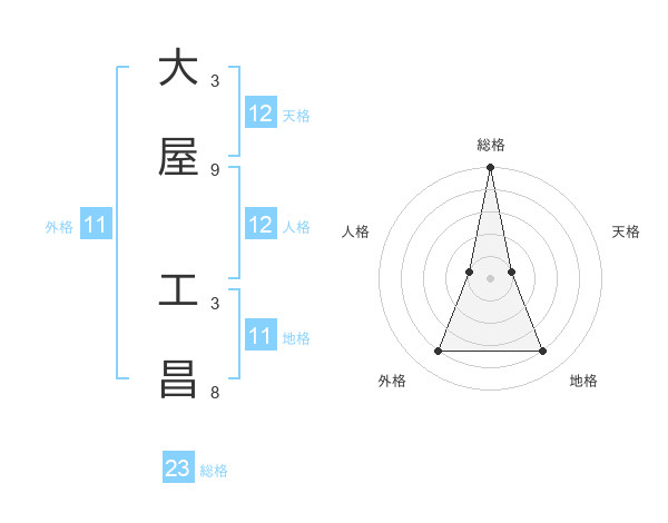 大屋 工昌さんの総格は23画の5点!