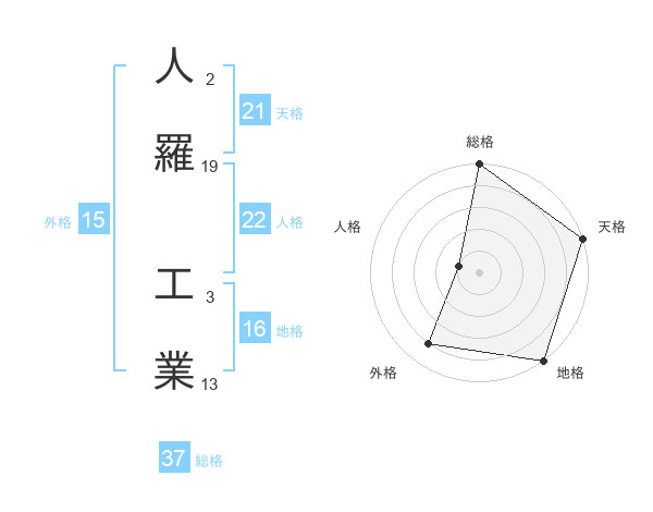 人羅 工業さんの総格は37画の5点!