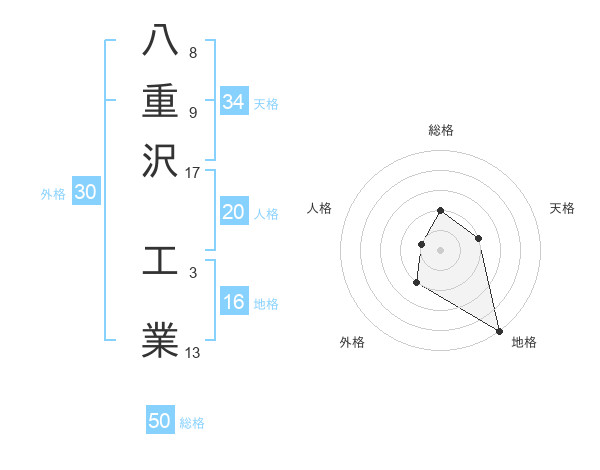 八重沢 工業さんの総格は50画の2点!