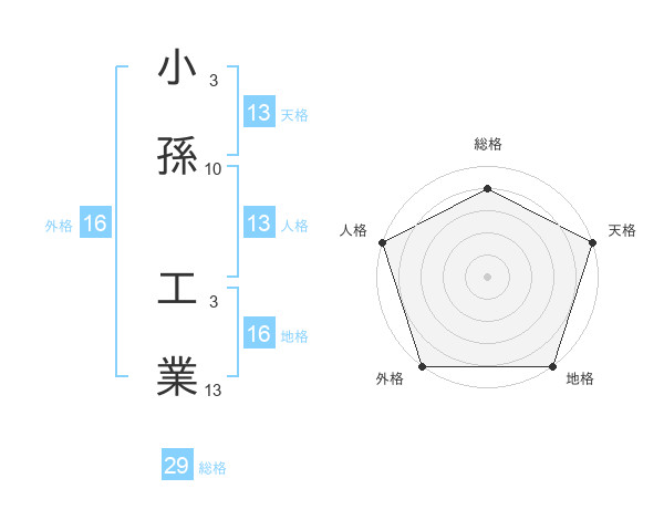 小孫 工業さんの天格は13画の5点!
