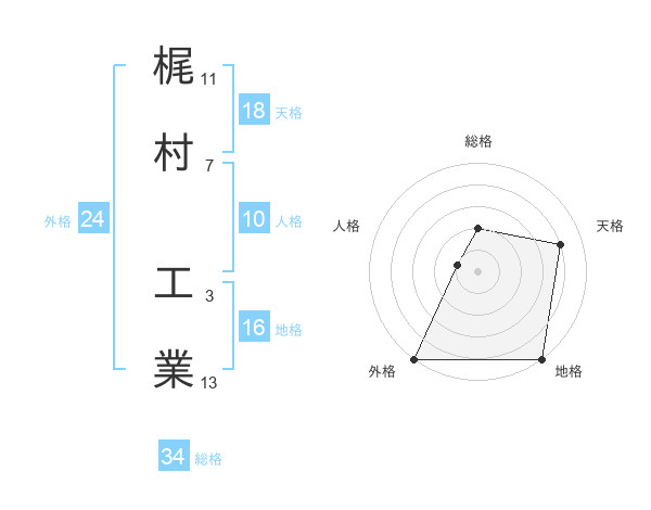 梶村 工業さんの総格は34画の2点!