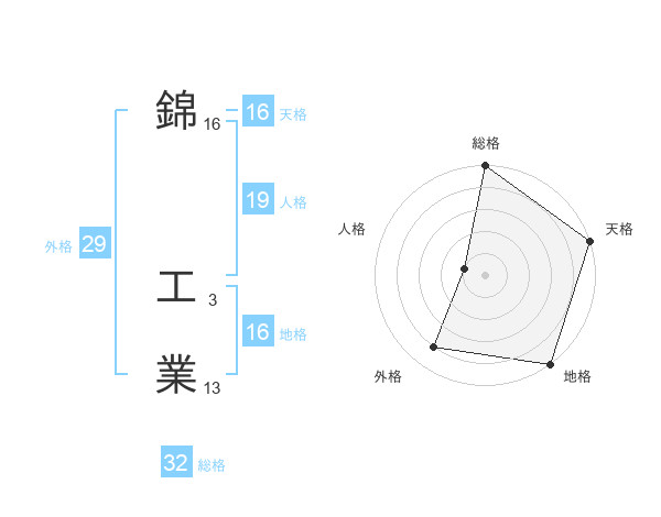 錦 工業さんの天格は16画の5点!