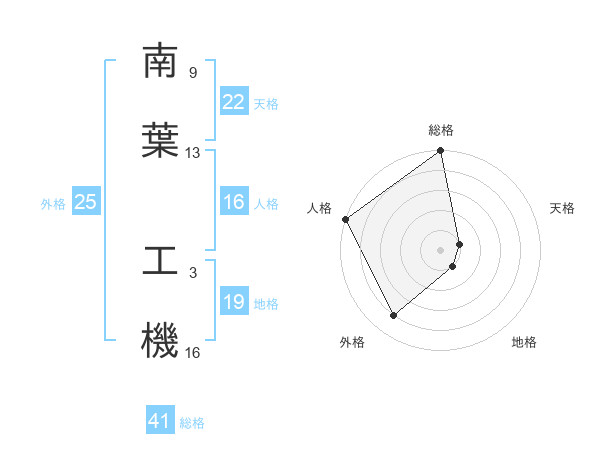 南葉 工機さんの総格は41画の5点!