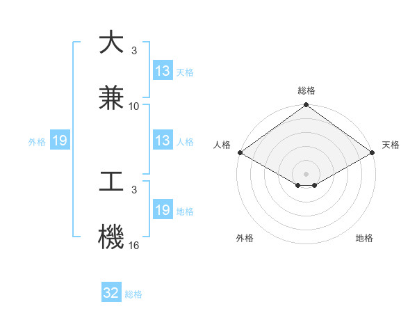 大兼 工機さんの天格は13画の5点!