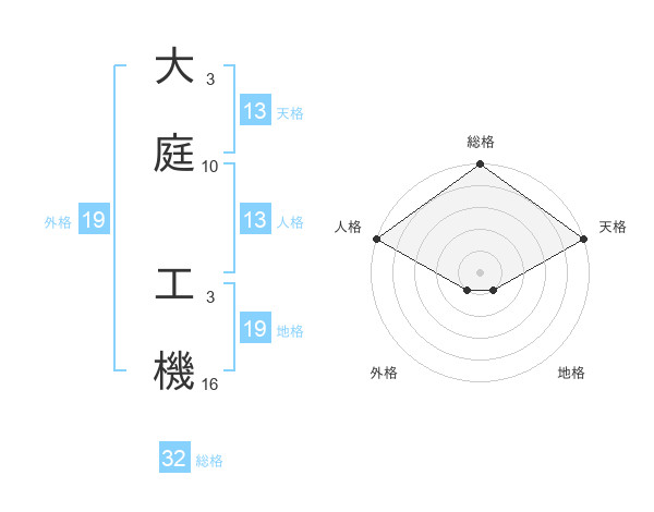 大庭 工機さんの総格は32画の5点!