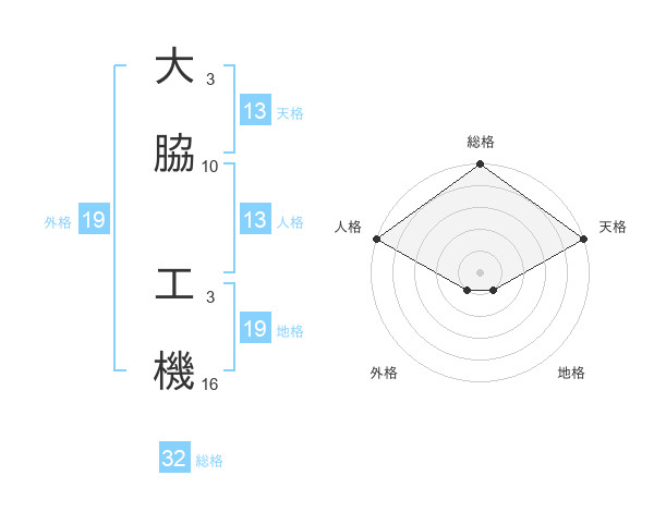 大脇 工機さんの天格は13画の5点!