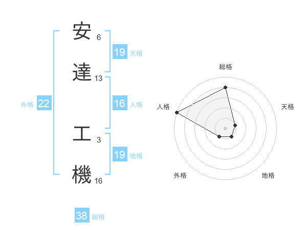安達 工機さんの総格は38画の4点!