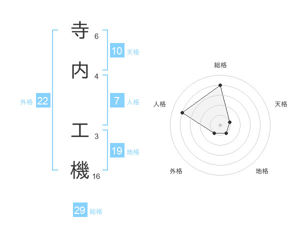 寺内 工機さんの総格は29画の4点!