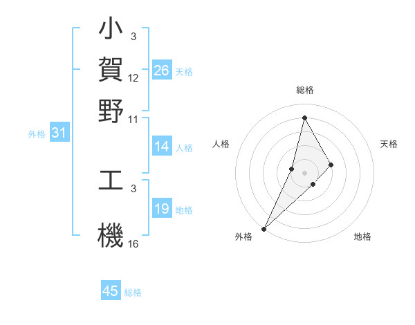 小賀野 工機さんを姓名の画数から五運を鑑定