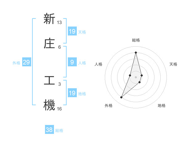 新庄 工機さんの総格は38画の4点!