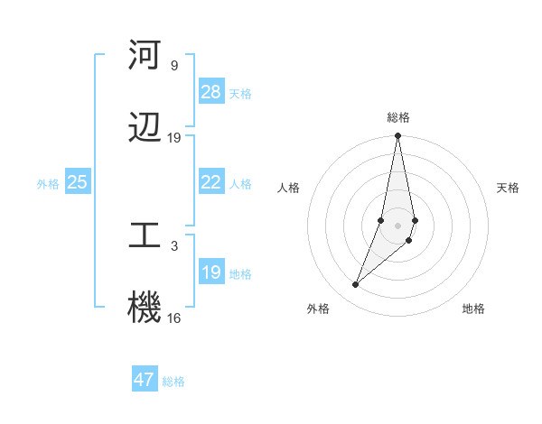 河辺 工機さんの総格は47画の5点!