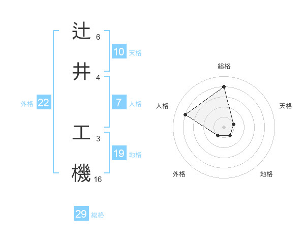 辻井 工機さんの総格は29画の4点!