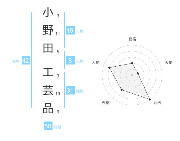 小野田 工芸品さんを姓名の画数から五運を鑑定