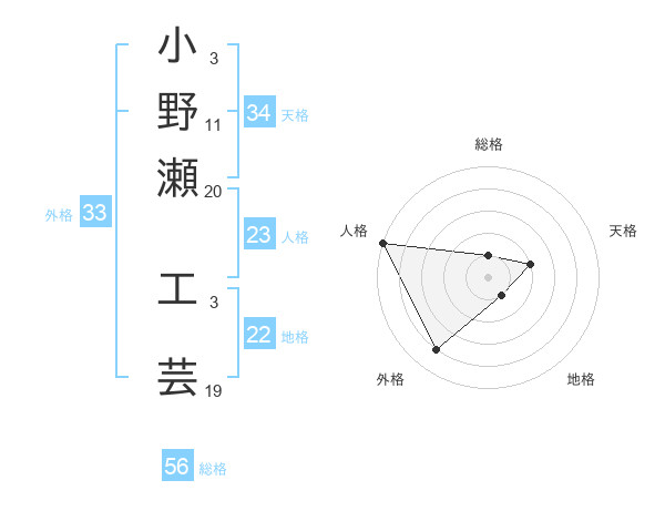 小野瀬 工芸さんを姓名の画数から五運を鑑定