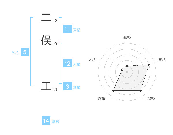 二俣 工さんの天格は11画の4点!