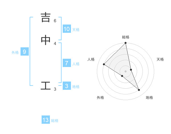 吉中 工さんの総格は13画の5点!