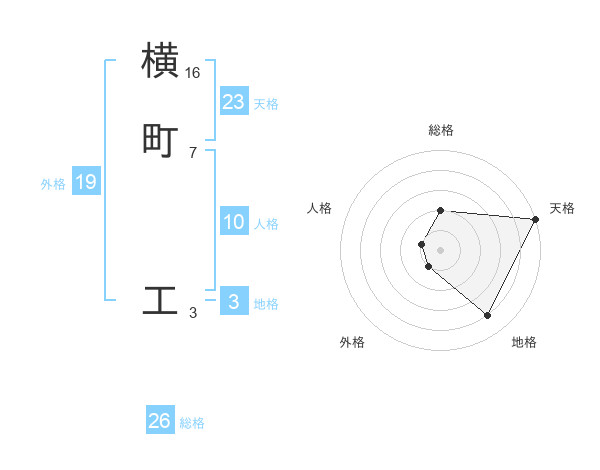 横町 工さんの総格は26画の2点!
