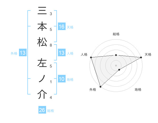 三本松 左ノ介さんの外格は13画の5点!