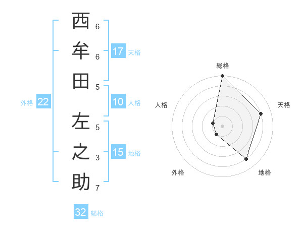 西牟田 左之助さんを姓名の画数から五運を鑑定