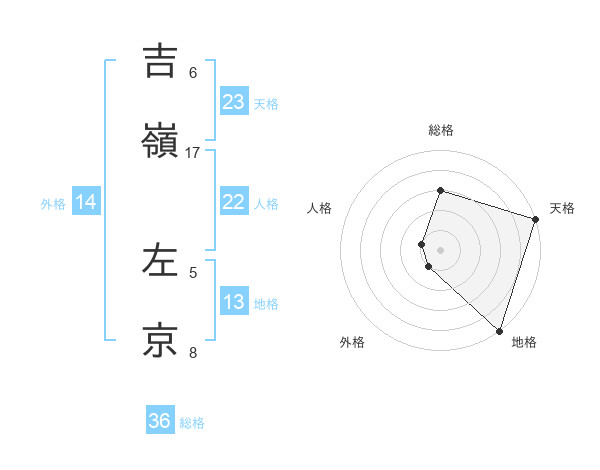 吉嶺 左京さんを姓名の画数から五運を鑑定