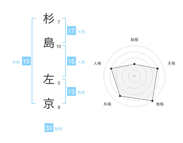 杉島 左京さんの天格は17画の4点!