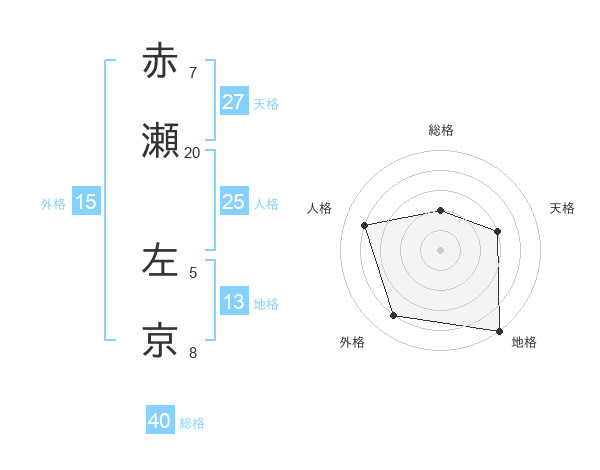 赤瀬 左京さんを姓名の画数から五運を鑑定