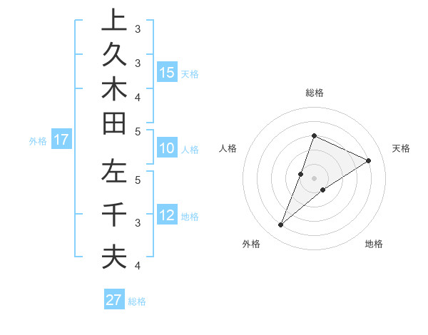 上久木田 左千夫さんを姓名の画数から五運を鑑定