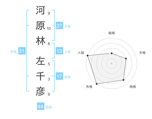 河原林 左千彦さんの人格は13画の5点!
