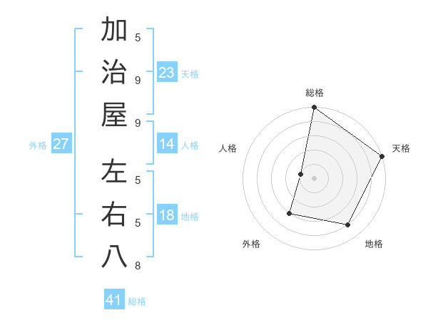 加治屋 左右八さんを姓名の画数から五運を鑑定