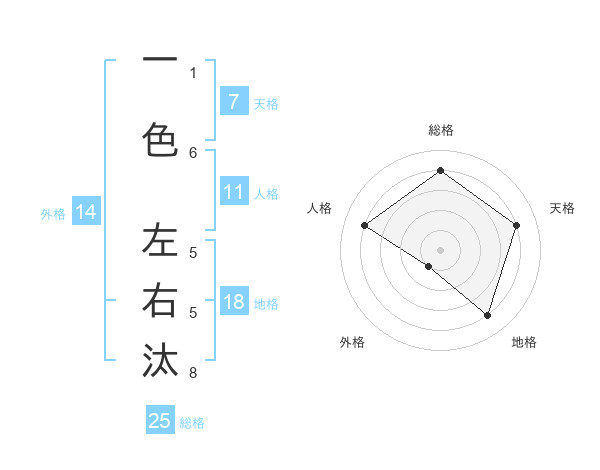 一色 左右汰さんの総格は25画の4点!