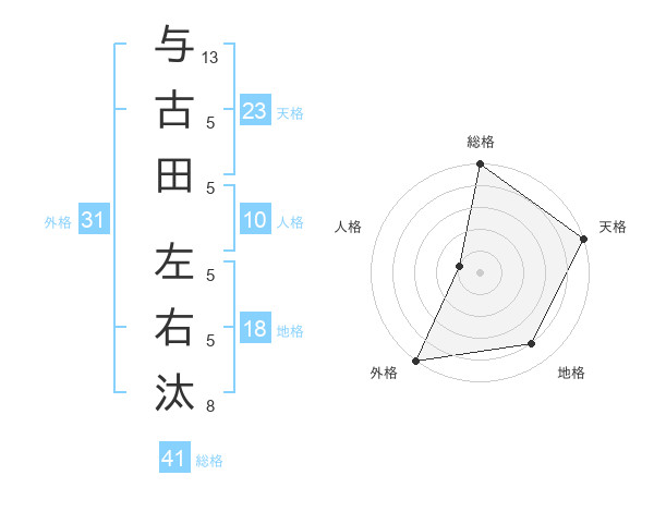 与古田 左右汰さんを姓名の画数から五運を鑑定